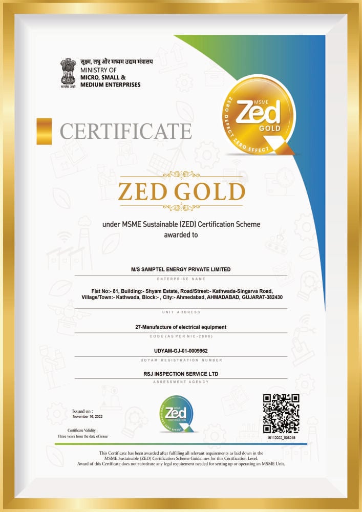 We are thrilled to announce that Samptel Energy has been awarded by the Ministry of Micro, Small, and Medium Enterprises (MSME) for our outstanding contributions and excellence in the energy sector.