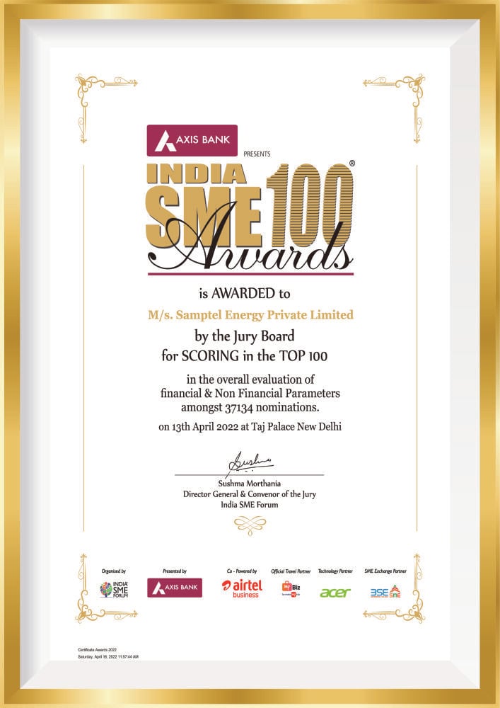 At Samptel Energy, we believe in empowering industries, driving growth, and building a sustainable future. This award motivates us to continue our journey of excellence and to strive for even greater heights.